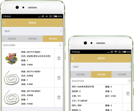 同时也支持旧货换新货,系统自动根据旧货回收金额,自动计算差价。单据自动同步到前台电脑,客户可以到前台进行交款完成回收或换货。