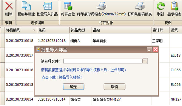 傲蓝首饰管理软件支持批量导入excel饰品资料、饰品复制功能