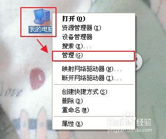 右键点击“我的电脑”,在弹出的快捷菜单中选择“管理”,打开“计算机管理”。