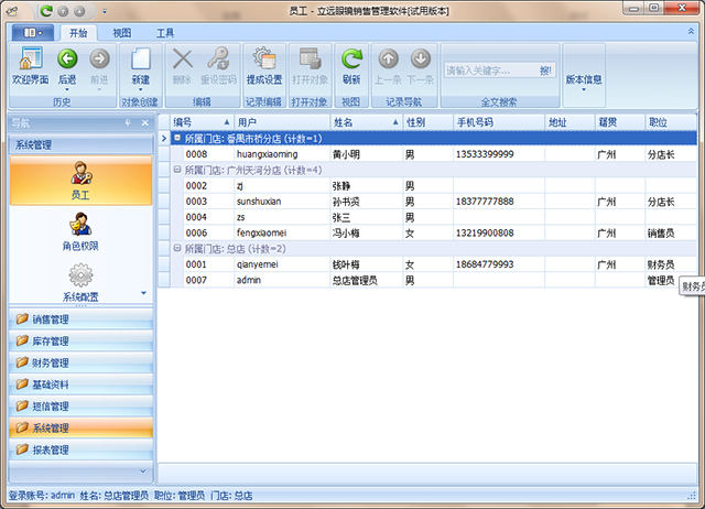 1. 点击导航菜单的“基础资料 > 员工”,如下图: