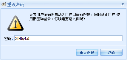 3. 如需修改密码,可以导航到“基础资料 > 员工”,选择一个员工,或双击打开一个员工,点击工具栏的“重设密码”,在弹出的对话框中输入新的密码即可。